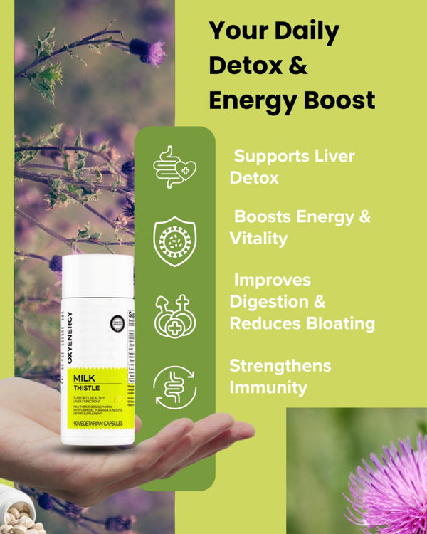 Combines milk thistle with turmeric, pueraria isoflavones, vitamin C, inositol, and L-methionine for comprehensive liver detox, inflammation support, antioxidant protection, and metabolic balance. One capsule a day ensures digestive comfort and sustained energy.